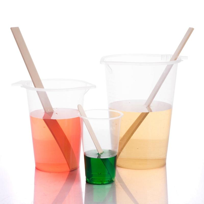 Set za mešanje smole sadrži 5 plastičnih posuda zapremine 1 Litar i 5 drvenih štapića 30 cm.